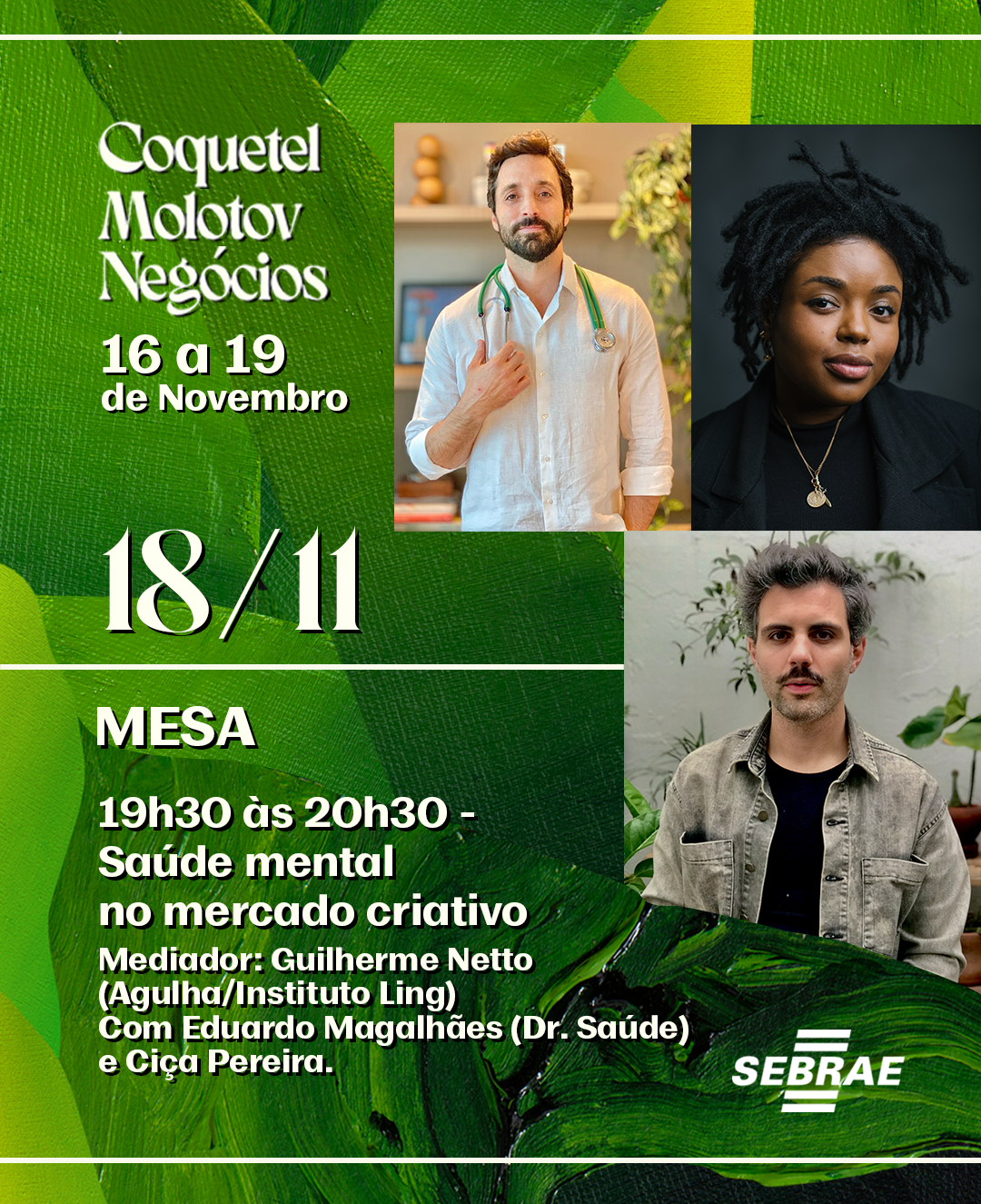 Mesa: Saúde Mental no mercado criativo com Eduardo Magalhães (Dr. Saúde) e Ciça Pereira com mediação de Guilherme Netto (Agulha/Instituto Ling)