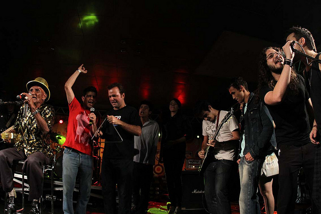 No Pará, ao menos, todos estão conscientes de que só podem romper as invisíveis barreiras geográficas se todos estiverem juntos. O clima de brodagem e amizade entre os artistas é visível em cima e embaixo do palco. Era fácil ver ali circulando entre os palcos artistas que nem estavam escalados para este ano como Pio Lobato, Lia Sophia ou Felipe Cordeiro. Gente que estava ali simplesmente para ver os shows e apreciar o momento assim como o público que estava ao lado na plateia. Essa brodagem toda atingiu o ápice no show do Mestre Laurentino, considerado como o mais velho rockeiro do país, quando começou a cantar “Loirinha americana”. Em pouco tempo, o palco ficou tomado de gente cantando junto os versos clássicos desta música ao lado do veterano artista paraense. Momento histórico do festival com certeza.
