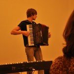 Senta-se ao piano e começa a tocar “First Dance”. Não sei se teve o mesmo efeito em todos, mas a vontade que tive foi de fechar os olhos e me imaginar num campo no interior da França com cheiro de lavanda rodopiando até cair no chão de tonta. Fã e inspirado em Yann Tiersen, Dave procura a magia que a música tem de fazer você sonhar. Sem muitos artefatos. Mas com uma doçura e habilidade que nos tocam. E sendo fã de Tirsen, ele nos brindou com “La Valse d’Amelie” no piano, como também “La Valse des Monstres” no arcodeão. Esta última eu filmei. Está no final da matéria. Lindo de morrer.